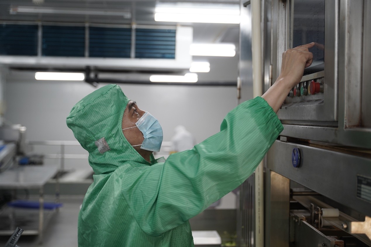 姜方俊每年投入数百万元做产品检测,每一袋从上海工厂生产出的沙拉菜,均含有原材料检测和成品检测双重报告。而这些智能工厂和智能生产线,就是姜方俊团队联合高校技术力量合作研发而成,因其高度智能化,上海工厂较常州工厂人效提升了一倍以上。