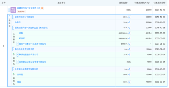 公开信息显示,西藏耀旺由西藏考拉科技发展有限公司(简称:西藏考拉)持股100%,持股比例33%;联想控股通过西藏考拉和融科物业间接合计持有西藏耀旺48%的股份。孙陶然在2023年12月卸任西藏考拉的法人一职,由王成接任。