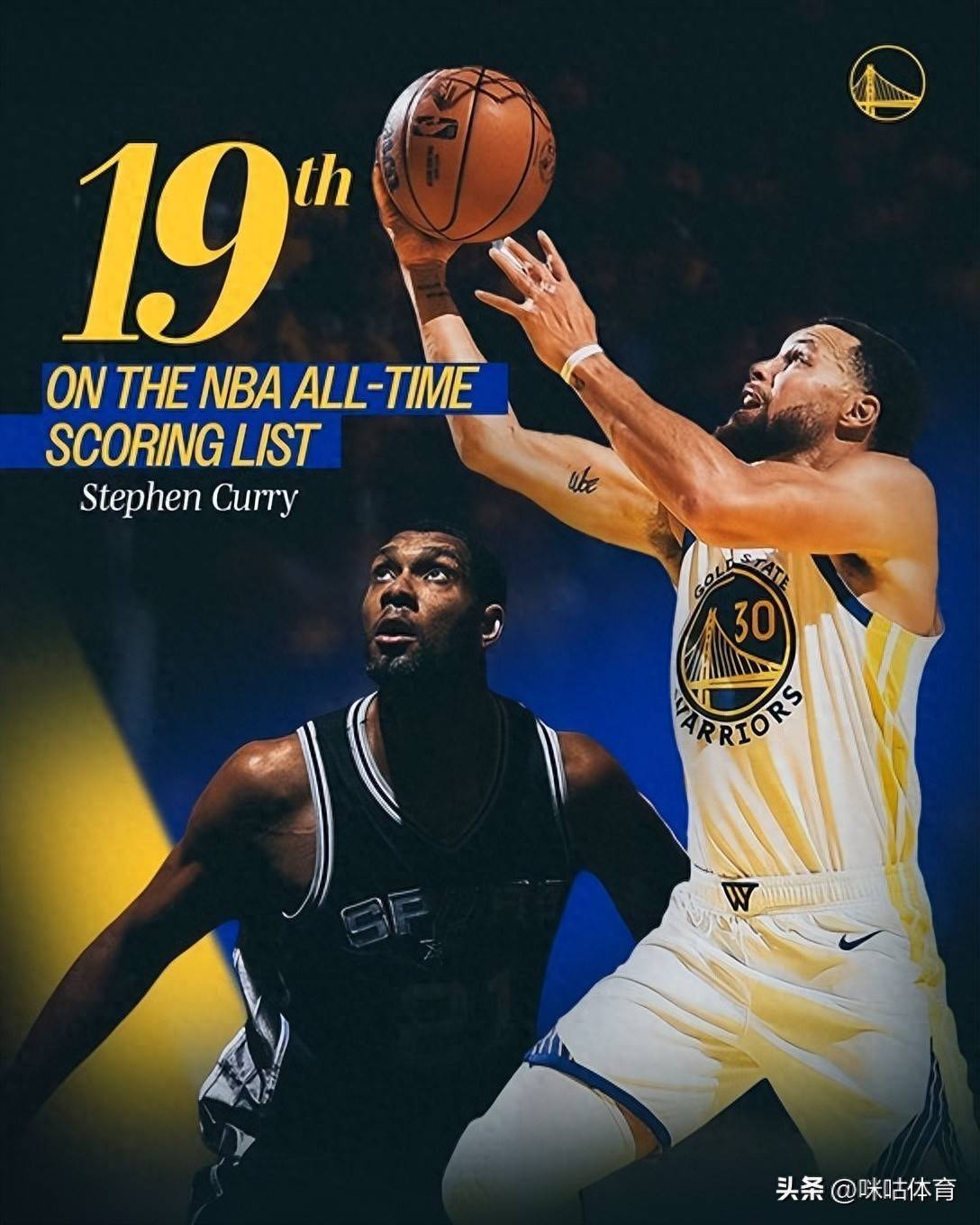 北京时间4月11日,NBA常规赛勇士对阵国王的对决火热上演,斯蒂芬·库里迎来生涯重要得分里程碑,凭借本场比赛的得分入账,他的生涯总得分成功超越传奇球星蒂姆·邓肯,升至NBA历史得分榜第19位。